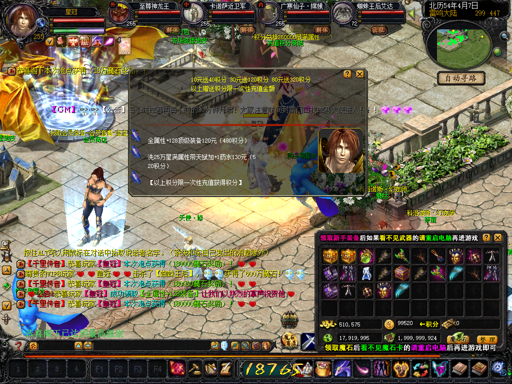 友情提醒:看不见魔石商店以及宝宝装备,充值后领取魔石看不到魔石卡的请重启电脑再进游戏!