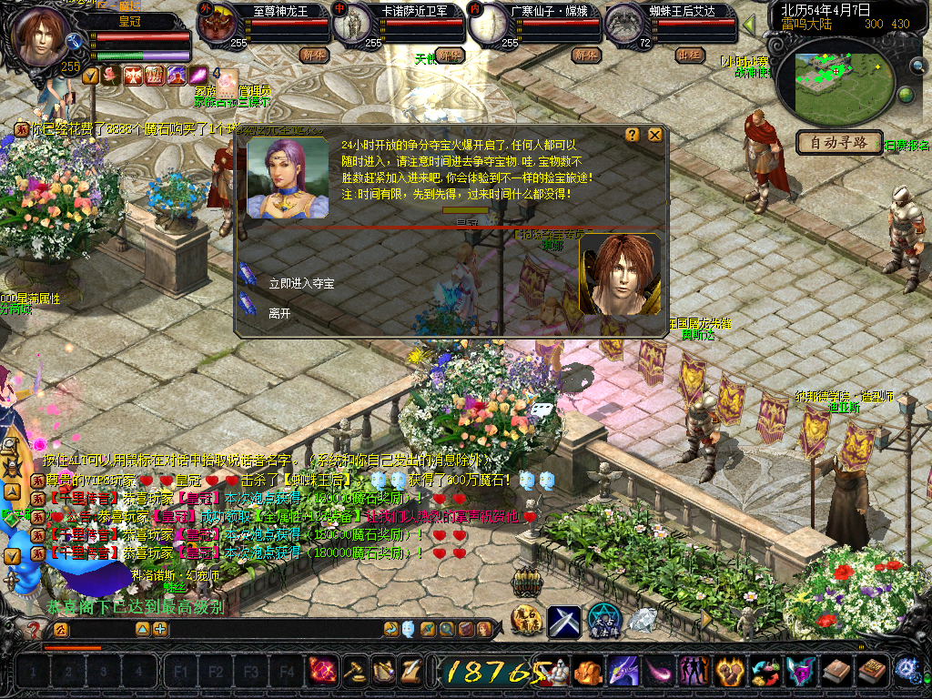 新增击杀蜘蛛王后累计60只可在雷鸣市场处NPC兑换魔石最高可兑换1亿魔石!