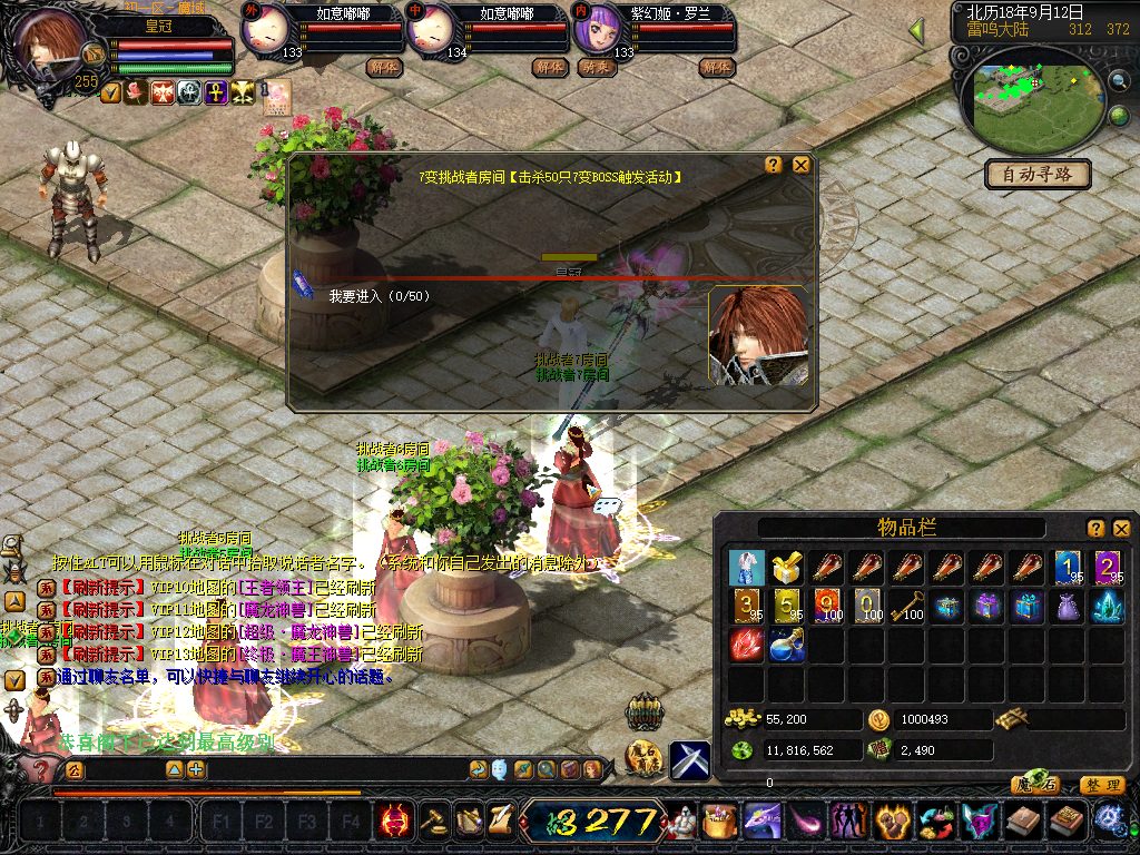 超级幻境:新增幻境,立马刷新50只二变怪物,NPC进入,地图为独立单人地图,可叠加
