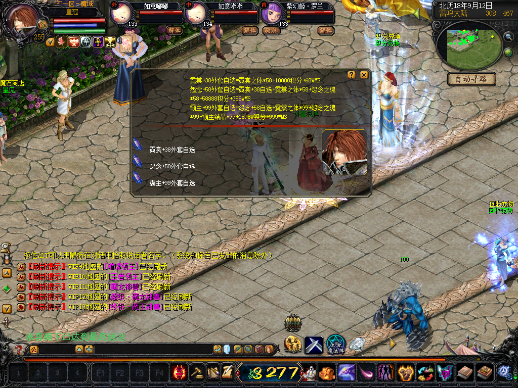 V11–魔龙神兽–刷新:120分钟—–V12–超级·魔龙神兽–刷新:180分钟—–V13–终极·魔王神兽–刷新:180分钟
