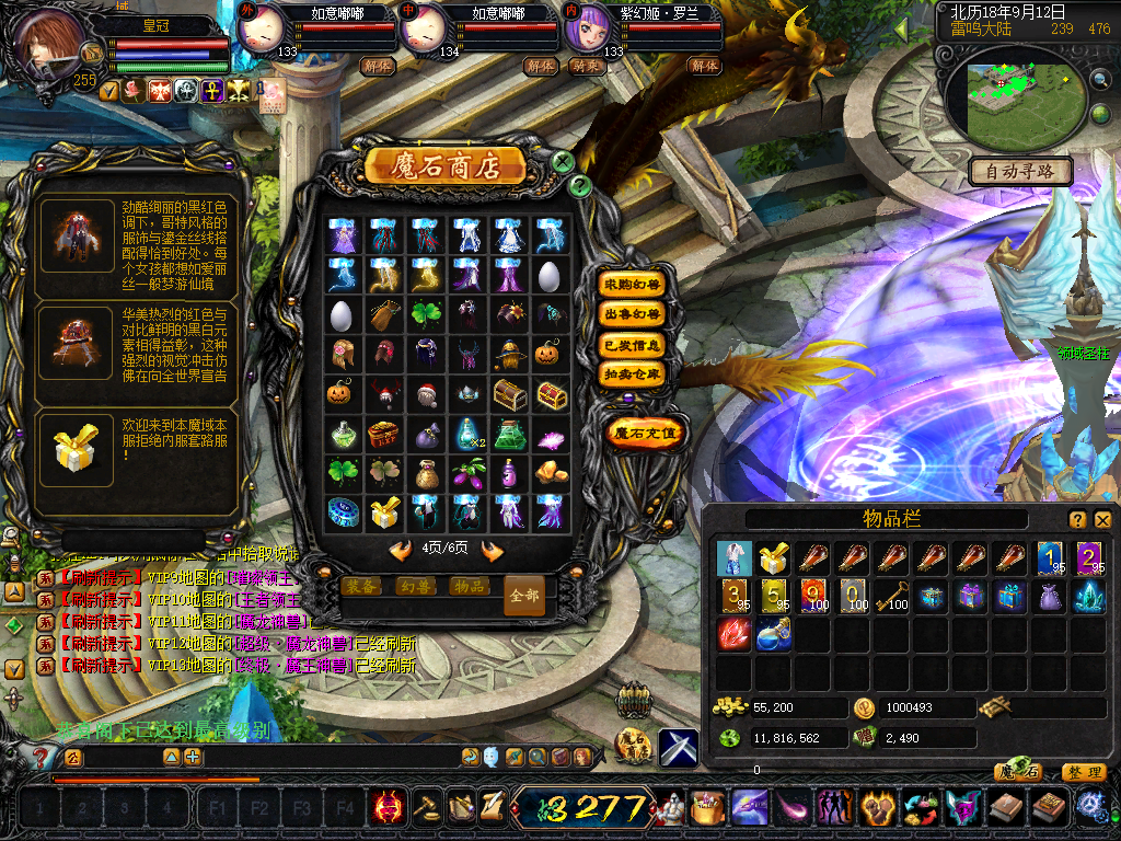 【周赛奖励】100级以上,每周六晚上21:00开始,奖励28.8W魔石(系统自动召唤)