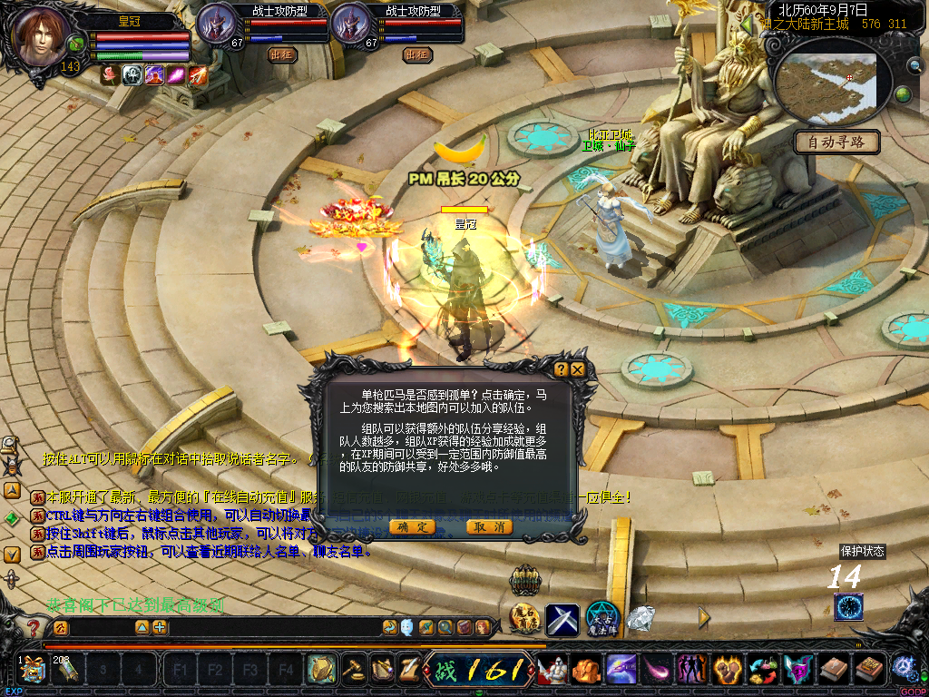 新区第9天正式团战晚上21:30开启,团战奖励全区充值的30%的现金奖励,( 团战胜利方获得80%,第二获得20% )