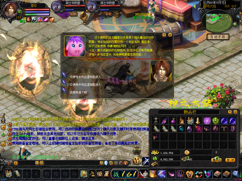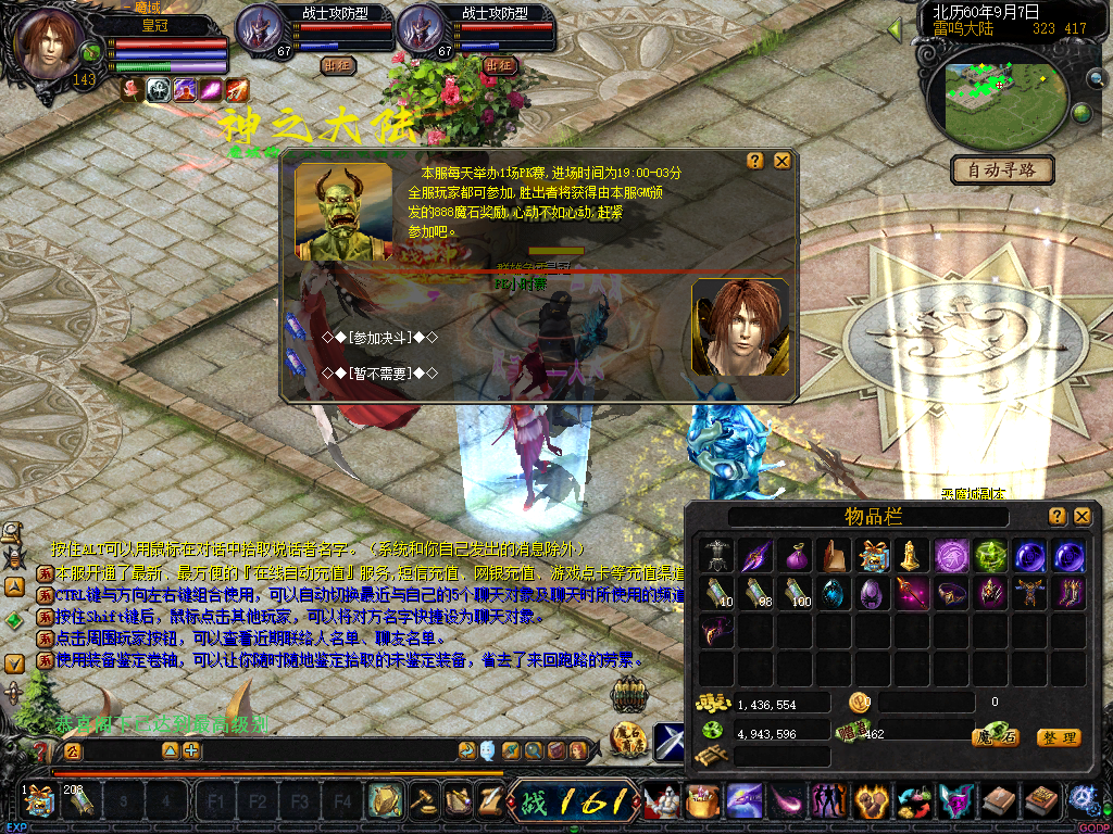 ☆周一BOSS “萨格罗斯”每周一20:00出现在自然女神之怒(510,528)附近.