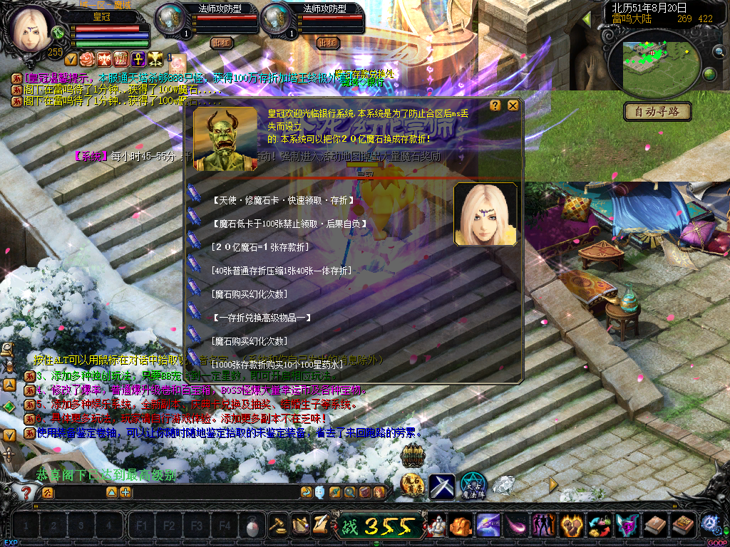 02、魔石多的玩家请到金猪那里领MS存折卡领取完,换好存折存好仓库!维护后MS卡消失不见!客服不负责!