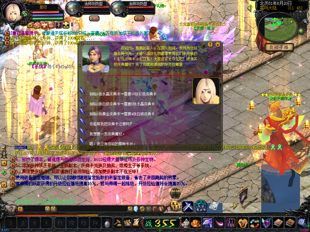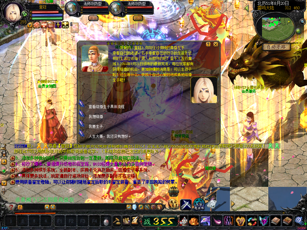 15、加入五行元素合成!全服狂暴五行元素!通过合成师合成四大神兽挑战卷和五星副本挑战卷必要品 传送NPC雷鸣口!