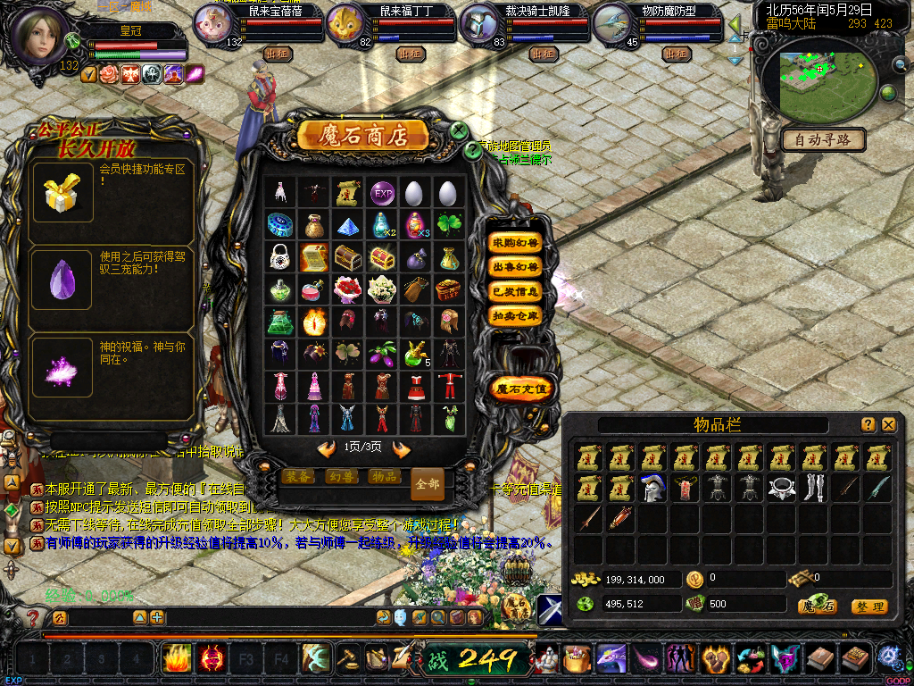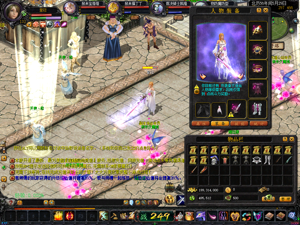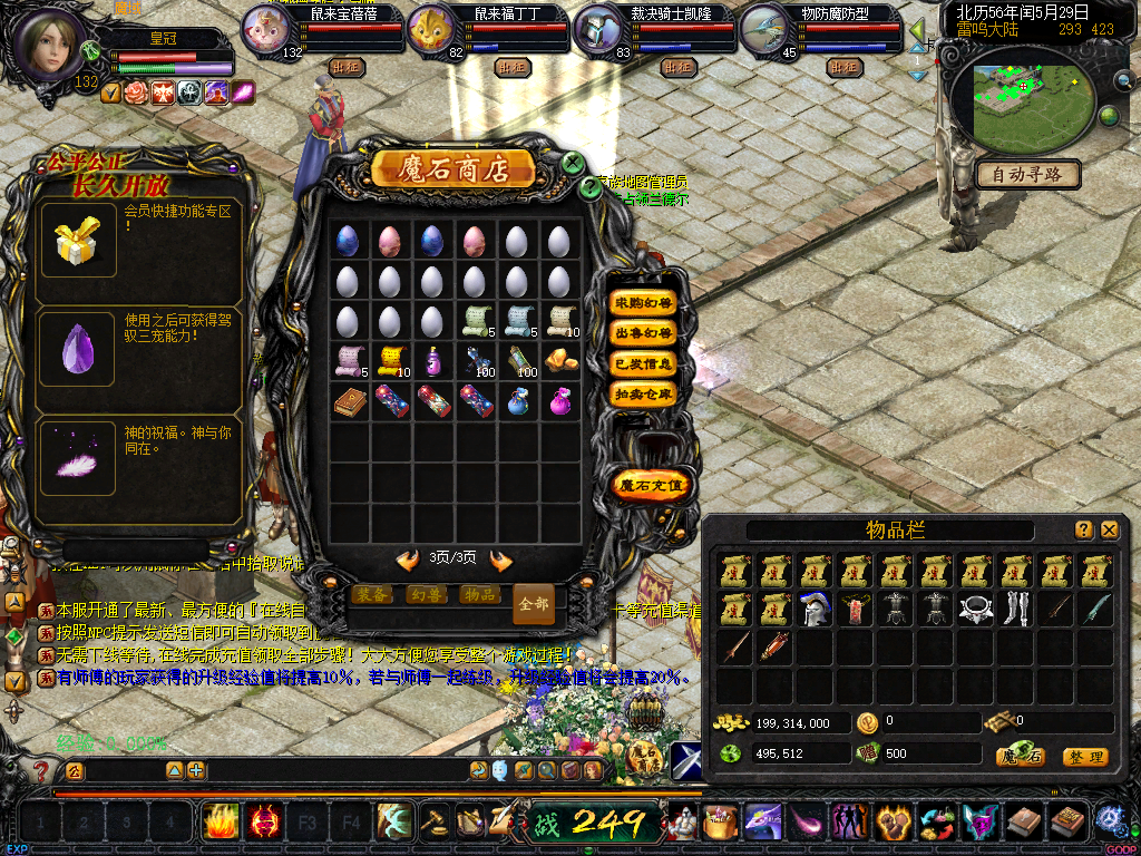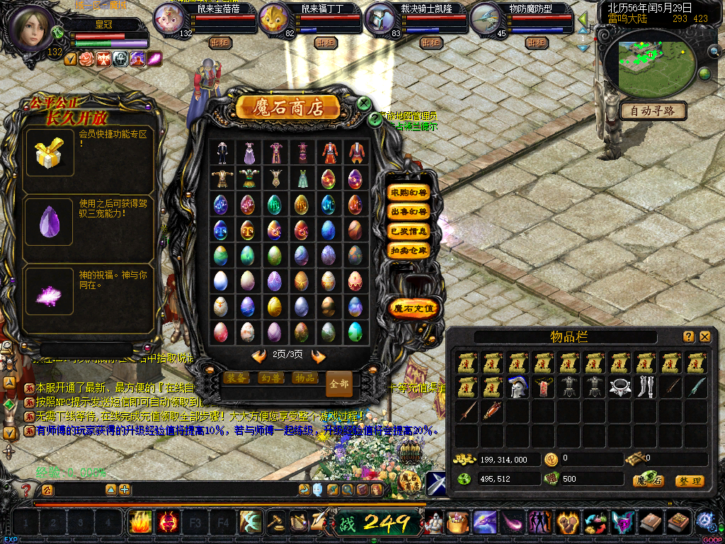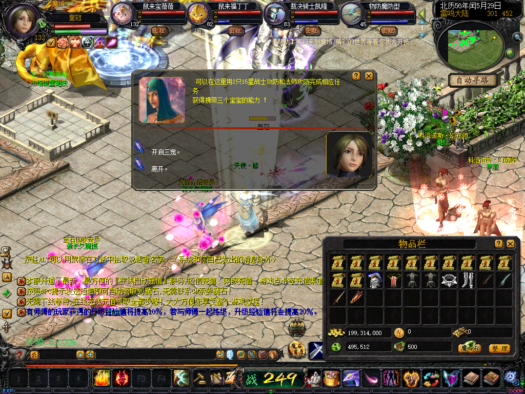 游戏介绍:宝宝封60.99星,最高副宠8星《用6星合到8星》 人物最高132级 装备最高极品+12 带2洞 永久3宠。