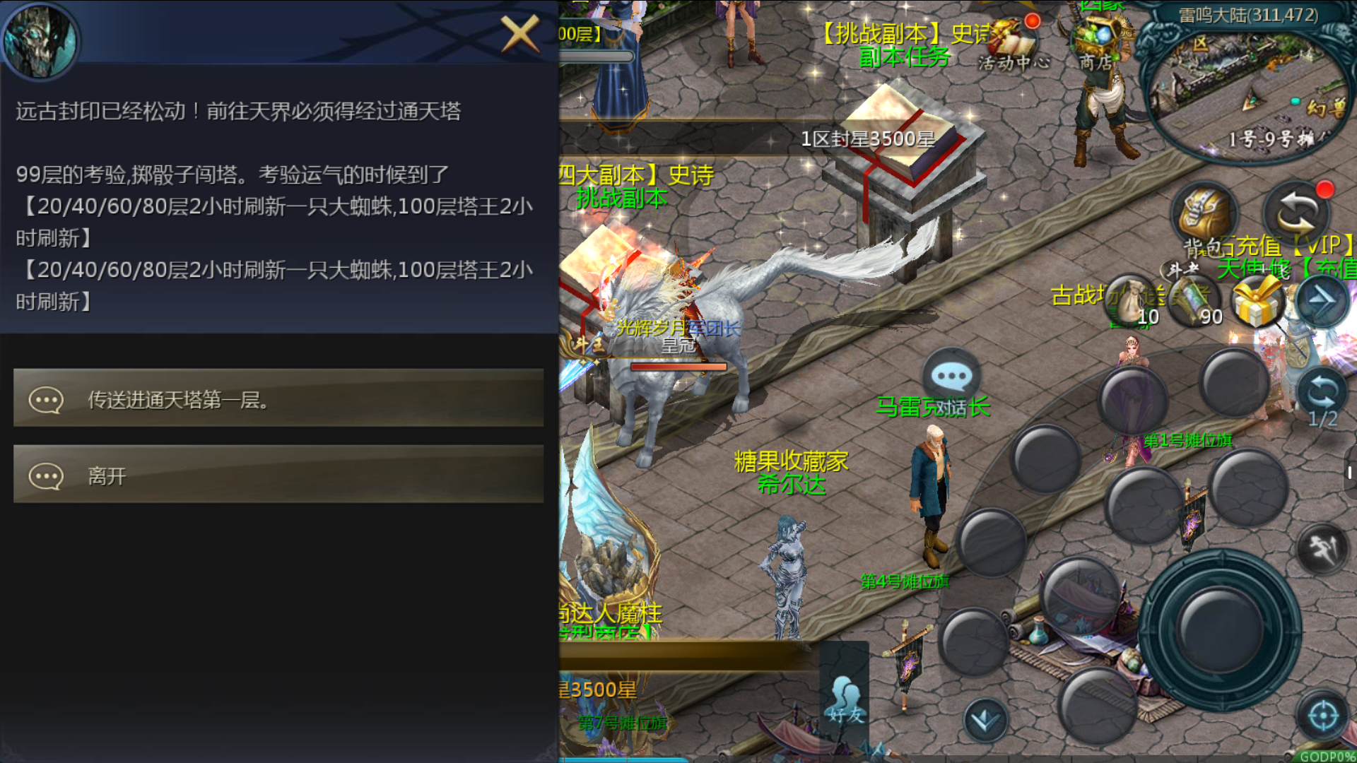 4.无聊的时候可以去刷塔,塔里BOSS爆大量灵魂,特求和副宠。(塔王爆大量灵魂王,石头,变雷药水等)
