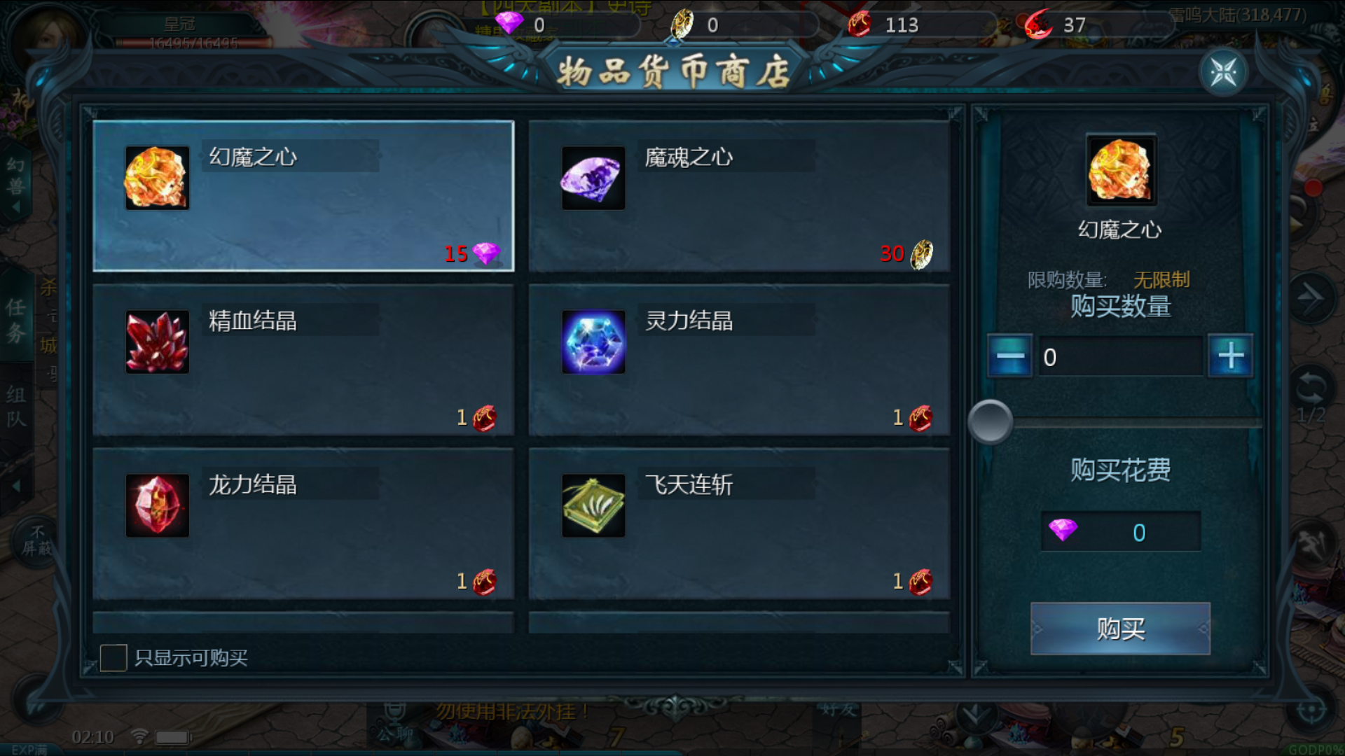 【公告】:系统可回收魔魂晶石.幻魔晶石.灵魂晶石,所有物资都可以兑换高级物资。