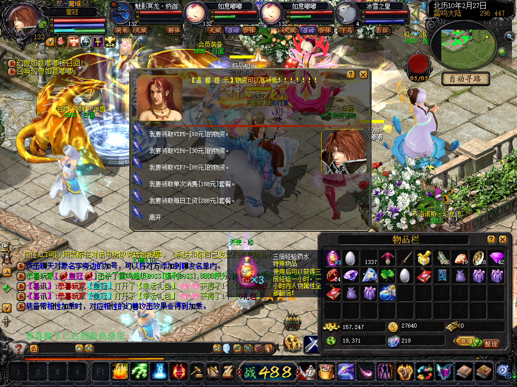 VIP5 10元 批量孵化20秒,三倍药水x2,高级经验宝石x1,三宠药水x1 电浆药水x1